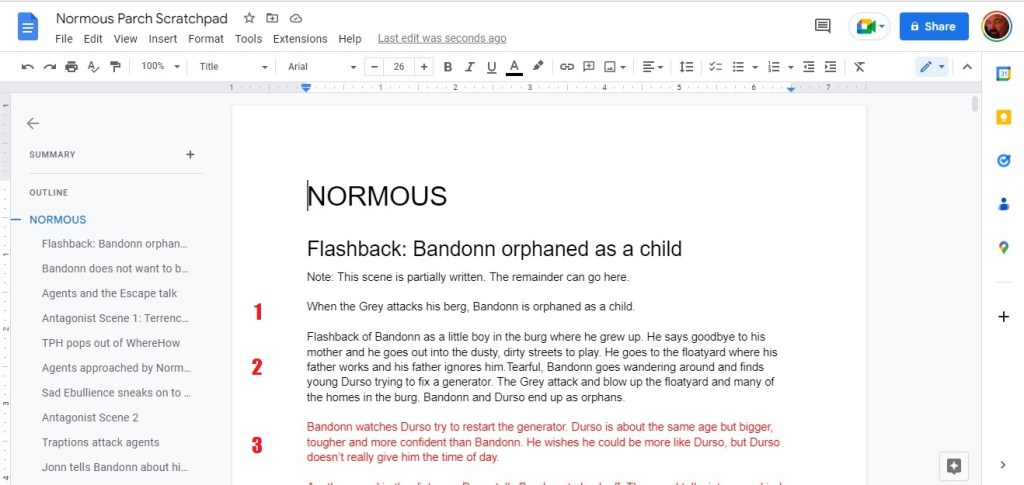 My writing process, including a screenshot of my Google.doc I’m using for NaNoWriMo 2022: