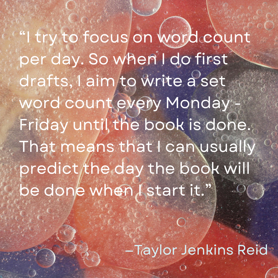 “I try to focus on word count per day. So when I do first drafts, I aim to write a set word count every Monday – Friday until the book is done. That means that I can usually predict the day the book will be done when I start it.”