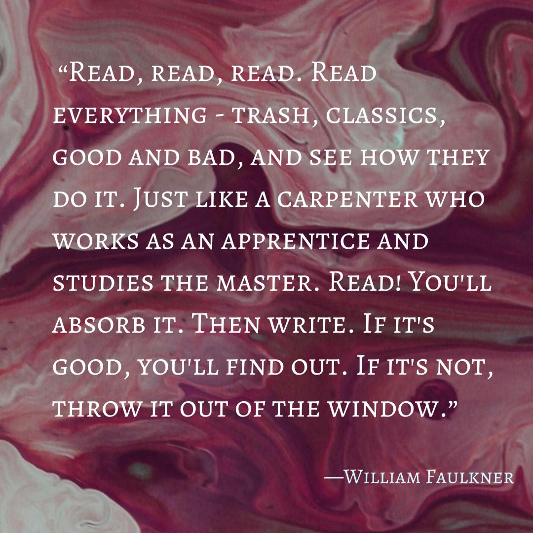 “Read, read, read. Read everything – trash, classics, good and bad, and see how they do it. Just like a carpenter who works as an apprentice and studies the master. Read! You’ll absorb it. Then write. If it’s good, you’ll find out. If it’s not, throw it out of the window.”
