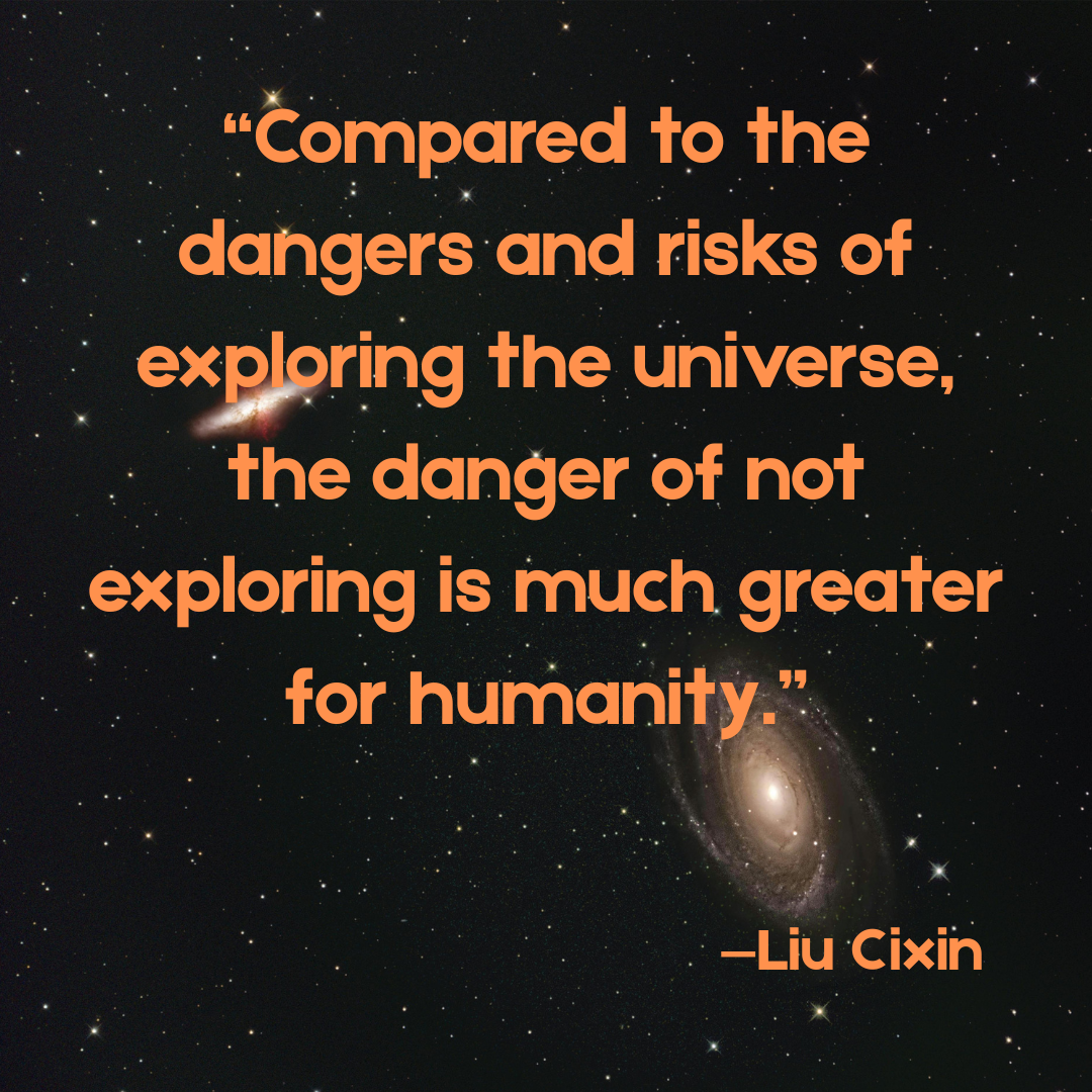 “Compared to the dangers and risks of exploring the universe, the danger of not exploring is much greater for humanity.” —Liu Cixin