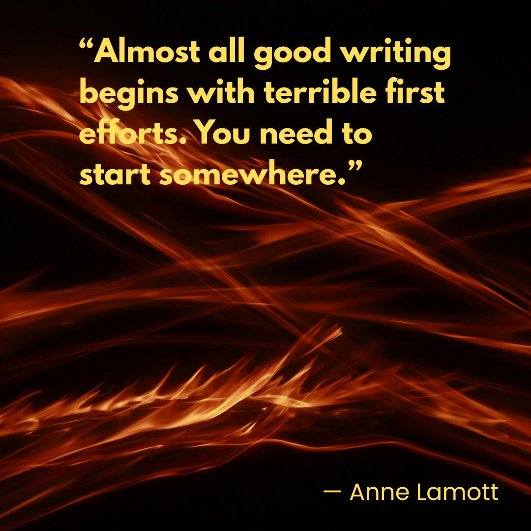 “Almost all good writing begins with terrible first efforts. You need to start somewhere.” — Anne Lamott